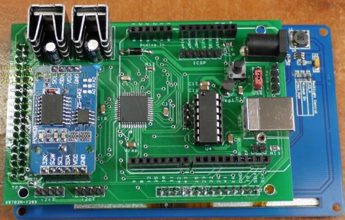 I've now got loadable drivers for the SSD1963, SSD1289, and S6D0164 TFT displays running very quickly using the 44-pin uM2. Peter Carnegie has created SD card routines for the uM2, and I have demonstrated that these can co-exist happily. We have also seen that the PIC16F1455 provides an ideal USB interface for minimal cost. Given all this, I have designed a simple board that integrates all these components and brings out pins in an Arduino compatible format to allow easy expansion. I think this should be possible to fit into a PCB about 100 x 60mm The board is designed to be powered either by the USB cable or a DC input. This is link selectable for simplicity. The PIC16F1455 is always powered from the USB cable so will not reset with the uM2 or when the DC input is disconnected. This should make the USB connection much easier to manage. I'd appreciate any feedback on the concept and circuit design. 2015-08-20_121838_MM44.pdf |