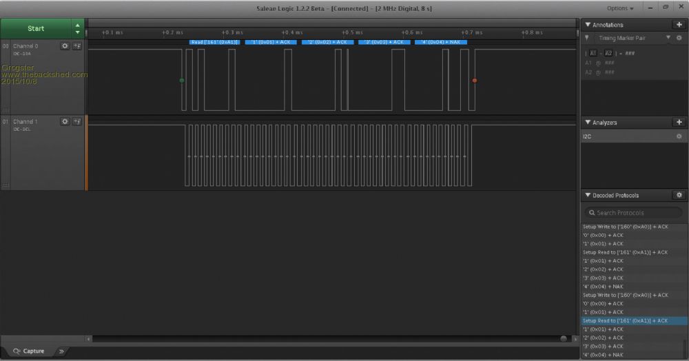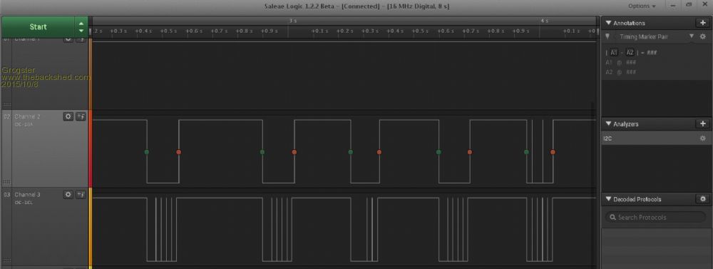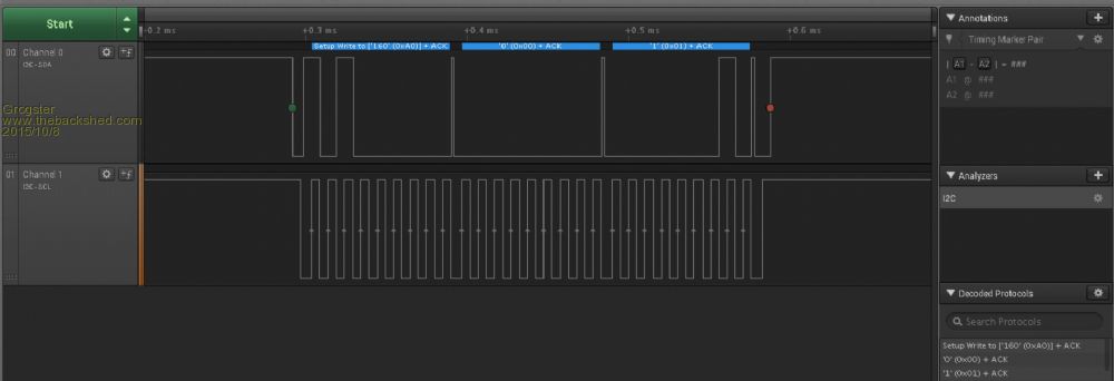 Results from the logic analyser: