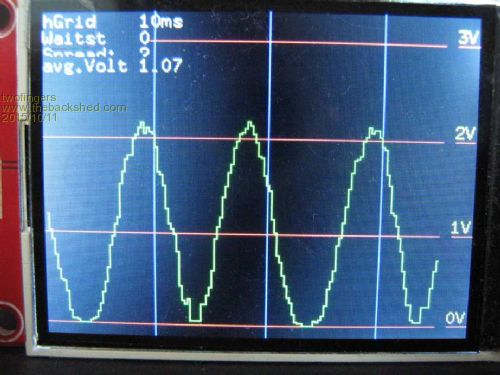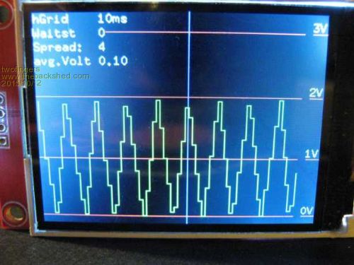 I thought, to get a value in MMBasic, that ten samples had to be taken, and then the two extremes were discarded and the rest averaged ? From 5000 s/sec that would yield about 500 values/sec, which would mean about ten per 50hz waveform , so a square wave should be a little rounded. (?) (I think it looks pretty nifty anyway !) |