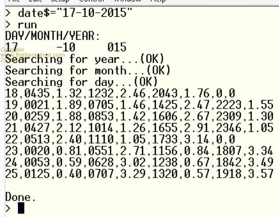 Then keep reading the entries until I find the one that corresponds to the day in DATE$. That done I want to INPUT the next 8 entries which are the times and heights of the tide and print them to the screen.