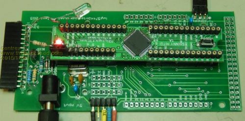 The above is a picture of my Skinnymite and motherboard, the led in the top left is just a flashing led as per Geoffs manuals to show me the board is working.