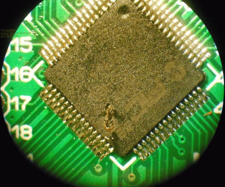 Sharp angle on soldering iron, and under the microscope.Edited by Grogster 2016-01-01
