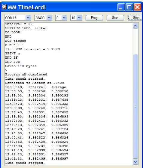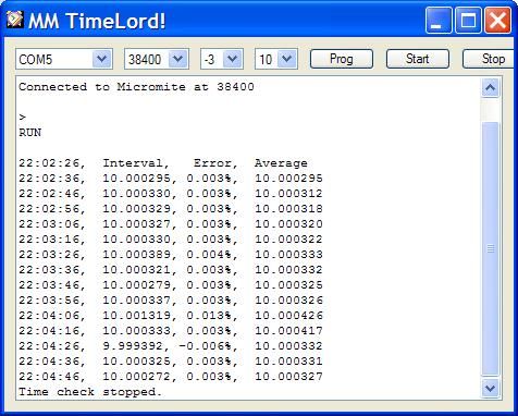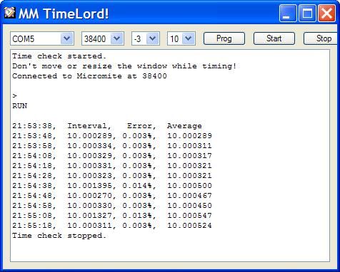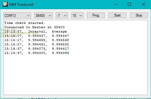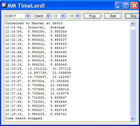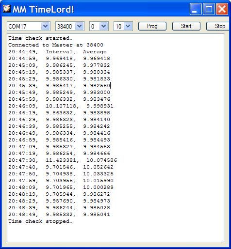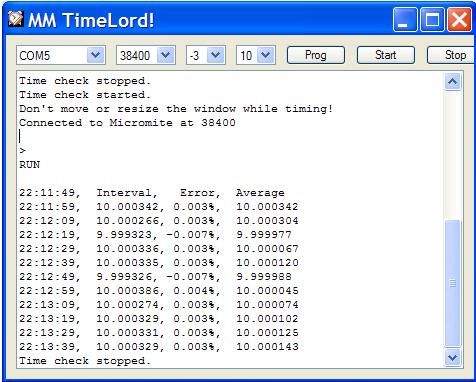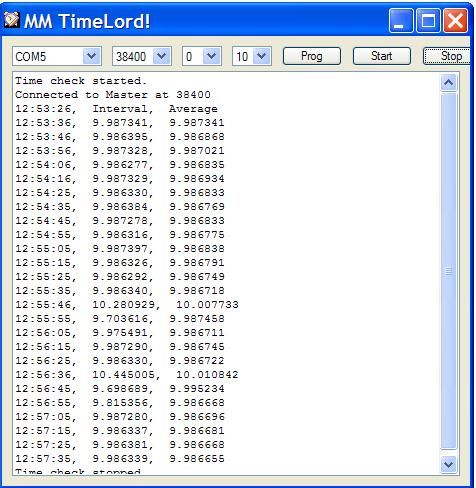 I have made a couple of changes to MMTimeLord. There was a bug if you tried to use an update interval other than 10 seconds. I have added a percent error column to show that the default is still pretty good. Time check started.