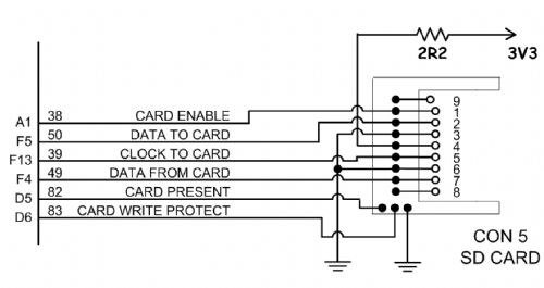 Mik, thank you. Yes, in fact although I checked out Grogster's pins against my schematic, I had failed to notice the A0/A1 discrepancy. My connection was mapped to A1. I have checked the UBW32 schematic and I note that A0 emerges at UBW Leg7 and is mapped to "Pin20" in MMBasic. Therefore I agree that CARD ENABLE should be connected to A0.