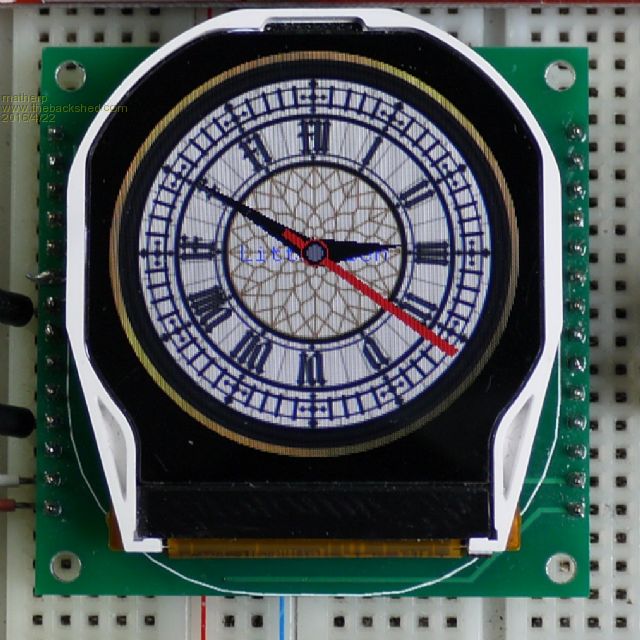 All the display handling is done though a combination of the standard Micromite graphics calls and new functions provided by the R61505V driver. The second display in the video is just being used as an interface to the SDcard containing the clock image