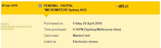 Interesting observation after ordering an Explorer 64 from micromite.org. It was pretty obvious the site is UK based, from the currency down to all the contact detail. What surprised me was the way the PayPal transaction appeared on my MasterCard. Does this indicate that there is a local point of distribution here in Australia? Cheers. |