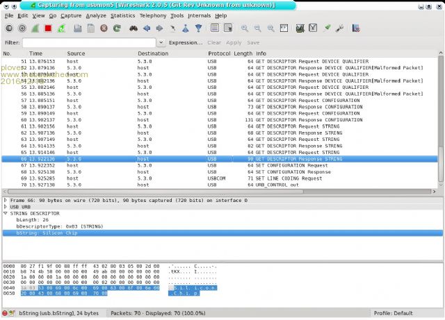 My quick read of the manual also reveal something about the USB protocol structure such things as: Isochronous, Bulk, Interrupt and Control this was words I saw when applying Wireshark analyser to the USB ports on the laptop. Since the PC's do not seem to know there is a new device, this is not of much help at the moment.