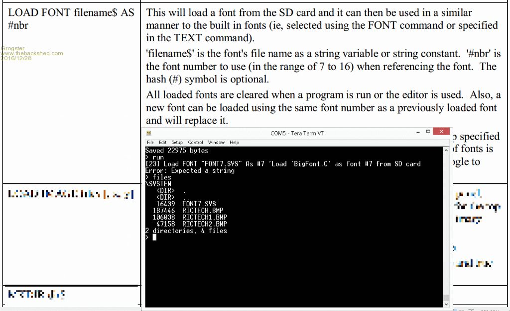Trying to use the LOAD FONT command on an E100 board, but I keep getting an odd error:
