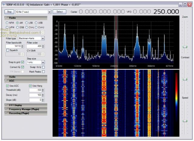 It sure makes tuning antennas a breeze, and for what it does its not expensive. So I went & dug the USB tuner up a few minutes ago & plugged it into my laptop. 2 minute exercise to install the drivers & software. This is what I'm seeing from my HC-12's using the approximately 4" whip antenna supplied. That spike is the master polling the slaves; (master under a metre from me) I can just see the slaves respond; (about 8m away). As they are interrupt driven, their response is almost instantaneous, so easily lost on the spectrometer. Could easily address that by giving them a 200ms pause for testing purposes. It does peak a bit higher than seen above, just hard to get a screen capture. Maybe for testing purposes a bit of code to continuously send data would be the go. Phil. |