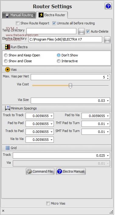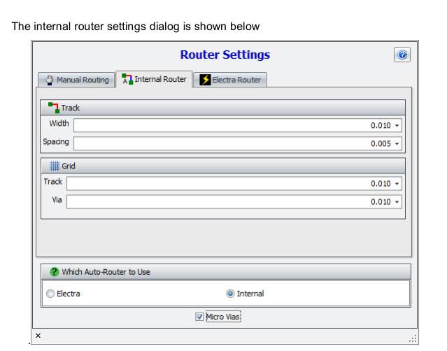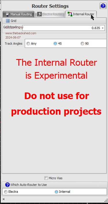 I still can't seem to autoroute.  Here are my settings pages.  I note that I do not have any option tab for Ïnternal Router  on the Router Settings page.  Is there any way around this?