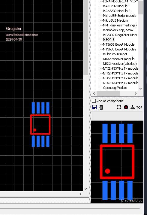 You beat me to it! Exactly as you say. Some footprints you just have to design yourself, and then save them as a makro - then you can use them later. I did quite a few of my own ones. If you want me to upload them as a ZIP file, let me know. It includes an MSOP-8 footprint. ![]() Smoke makes things work. When the smoke gets out, it stops! |