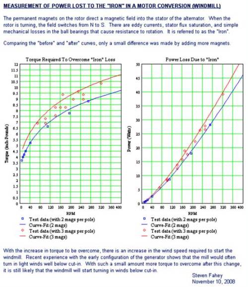 ...don't you just love cliffhangers...? [quote=Steven]Then build a curve-fit to the data. I suggest a logarithmic function because it has worked for me 3 times, though I do not know what the function actually should be.[/quote] You may find this article interesting; it deals with determining iron loss in brushless DC motors. The Steinmetz equation shows that iron loss doesn't vary linearly with frequency (RPM) as I had thought so far: