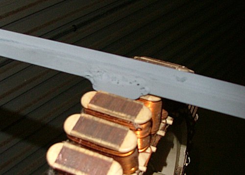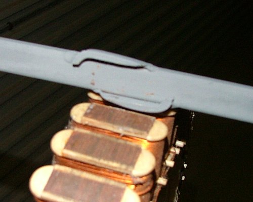Hi Glenn, This is a little more elegant than the bar of an F-clamp that I used, just pushed down between the poles. How much dressing of the pole faces was needed to get clearance on the rotor? The amount of angle you have will reduce the cogging a heap. Gordon. PS edit: The bar I used was smooth sided. None of the enamel was damaged on the windings during the bending process. I did not rush it, which helps as well. become more energy aware |