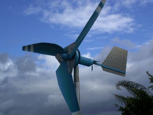 Gordon, you are quite right. Please bear with me, my tech son does not type and I should listen harder. It has only been a few days up and have seen 37.5 amps from total both mills. So 14.5V x 37.5amps=543.75watts. Both mills are 2.4m (8') and still tweaking blades to avoid high speed stall, hence tip spoilers(Guerney Flaps), etc. New mill has not seen 30kts yet, but close and not furled or stalled. With the two mills it is more about the extra KWH generated per day and this is of course doubled. Would be good to have more batteries to store these KWH. On another note our controller cuts in 12.5 and drops to dump at 14.5. Reason being that you are limiting the amount of power wasted in the dump, especially when under inverter load. To further answer your earlier question re inverter it depends on how much draw down it is causing. In case of fridge and freezer in high wind they match the draw down and in fact charge the batteries.