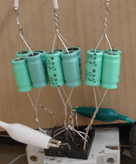 rgormley said  i can get 12 x 100uf 300volt from our work store