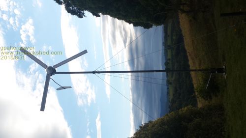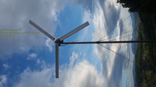 Hi all. We'll its been a while but finally I have finished my mill. It's only taken 5 years! Sooo gooooood to see it up and flying. For the first couple of days there was no wind at all. Think I read that somewhere on the forum that happens when you first mill goes up. Sure enough! Then one afternoon after work I heard a whirring sound after getting out of my car. I stood there in awe watching her turn. Tracking the wind. Speeding up and slowing down. What an awesome sound! Bout a week later we had some big storms. Could not believe how fast it was turning. ...I mean scary fast. In between gusts I lowered it down to avoid possible self destruction. Originally I was going to have a 10m mast . But decided to go with a 6.5 single pole for the time being until I get a few teething problems out of the way. I had a balance issue, but I believe that it is fixed and now runs smoothly. The furling is the other issue. I've seen the tail move in windy conditions but I feel it's just being pushed by sudden sideways gusts. Not sure if it's too heavy or wrong angles. Perseverance will prevail. I have a small battery bank . For starters I purchased 4 of 250Ah 6v and I can add to these later. Also just purchased a power star 3/9 kw inverter which upon reading recent articles draws considerable current on standby. And after checking the standby current it draws about 4 amps. way to thirsty . I only received delivery of the inverter a few days before I read the post about Gizmo's "building a new inverter". If only I held out for a few more days before buying from Ebay. Dam! Included a couple of pics of the mill and battery bank. Tried turning the pics around but they still came out sideways BTW...Nice build Gizmo