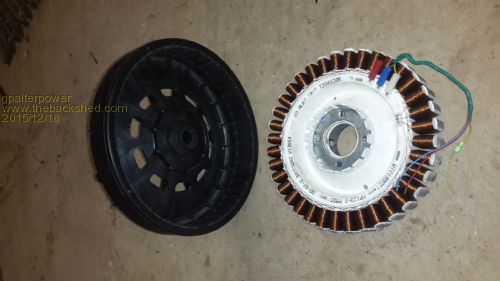 Picked up this little beauty yesterday at the local whitegoods repair shop. For 20 Bux I think its a bargain. Windings look good and the magnets feel stronger. Not too sure on the best configuration yet. With the light winds we get every arvo im thinking of 2X6C or 3X4C.