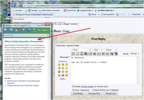 GWatPE Thanks for the heads up. That's pretty much what Glen said a month or so ago. I don't do the copy & paste trick; I just type in this little box and what happens, happens. I don't understand all the computer-eze nor do I have a clue how to fix stuff. Glen said my Mac automatically "corrects" code, but in so doing, messes up the posting. If you were to check ALL my posts, you'll see they are narrow-formatted. That's just the way it comes out; I'm not doing anything intentionally to make it happen. In fact, I clearly remember asking in one of my posts if anyone knew why all my posts were skinny and the rest of the crew's were margin to margin. I use a Mac principally because I don't have to run a firewall, but maybe I'll purchase a laptop to use strictly on the forum. That would make everything work normally and if the thing got infected with a virus (something a Mac is immune from!), I could just reformat the thing and carry on. I'd rather spend the $ on some new tooling, but I'll see how it goes. Another "fix" might be to post everything to an outside Web site, but I don't wish to draw traffic away from the 4m. What's a boy to do? Edit: [Quote] PS BTW you have uploaded pictures of an AIR-X windmill and your avatar, so what is different now? Answer: Clueless! Mechanical stuff I understand; computers jeeeesh! Nothing difficult is ever easy! Perhaps better stated in the words of Morgan Freeman, "Where there is no struggle, there is no progress!" Copeville, Texas |