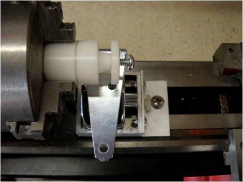 To cut the cam, which makes it all work, I used a face plate and two- sided tape. I stuck a rough-cut circle of 1/4" HDPE (plastic) sheet to the tape and spun it up. Double-sided tape holds work remarkably well, even metals. Here is the final-cut of the cam piece. I marked the center with a pencil, so later I can accurately measure out 1/8" to drill the mounting hole. The cam must travel 1/4" to properly operate the little push-button on the counter. If you don't have experience on a lathe, when things are cut or in this case when things spin off center, the total amount of movement is twice the distance from center, because it comes from each side. Here is the finished product, securely clamped onto the lathe in the proper position ready to count until the cows come home! . . . . . Mac Nothing difficult is ever easy! Perhaps better stated in the words of Morgan Freeman, "Where there is no struggle, there is no progress!" Copeville, Texas |