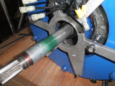 About a week ago the AXFX developed a knock. So dropped it down. It sounded like bearings. Of course I did use bearings out of a washing machine. I went and bought some new bearings. Once I loosened off the tension on the bearings the noise stopped. I stripped the machine down anyway. The old bearings felt good once I had them out. I think that the side load on the bearings was the problem. I made up a steel pipe spacer to go between the bearings on the shaft. I put the new bearings in. I changed the propeller shaft offset. It still did not track the wind like it should. It normally has about 25mm offset. I have drilled new holes so the offset is now only 12mm. The caps also turned up. So they are fitted as well. Trev @ drivebynature.com |