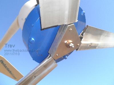 Hi Trev Yeah I think 3.5M diameter is about the limit for those blades. Its the strength of the mounting that becomes the problem, not the blades themselves. Are you running the steel tube the full length of the extrusion? Have you seen Gills article about blade balancing. http://www.thebackshed.com/Windmill/articles/TurbineBalance. asp It works for any size turbine, since you hang it flat, not upright, so you could use the technique it to balance a 5 meter turbine! Good to see your getting some wind up there. Glenn The best time to plant a tree was twenty years ago, the second best time is right now. JAQ |