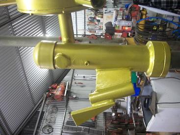 Hi Ian Looks really neat will be interested to see how the oil goes in the machine, nice job on the blade ends as well. I had the same problem with the pipe but what I did was to weld the attach points for the guy cables to just slightly above the blade swing so there isnt so much overhang on the pipe all good so far, but yours is 1.5 meters higher than mine. All the best Bob Foolin Around |