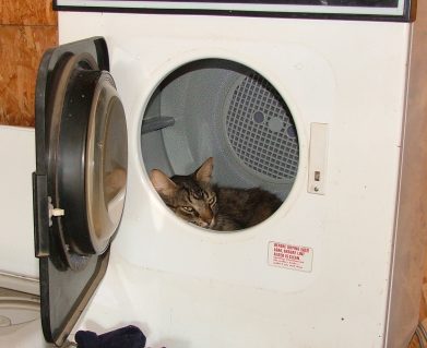 After Billy was killed by some mongrel dogs off-leash, we got another cat (saved it off death-row at the local pound). "Tigger" was feeling a little insecure in his first days here. We couldn't find the little bugger for hours... then I found him in the kitchen cupboard!