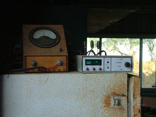 I finally got around to giving the PicAxe based charge controller a facial, drew it up in Paint Shop and printed out on some paper, then stuck it to the dull black face plate. Looks a lot better. The display here looks funny due to the fast shutter speed.