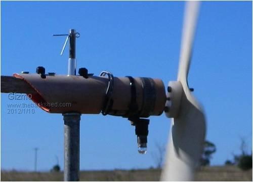Well the little windmill threw a blade. Broke clear off, left with half a turbine. I'm guessing a sudden furl at speed did it, and this is a typical problem with two blade turbines, there is a lot of stress in the turbine when the windmill furls to a new direction.