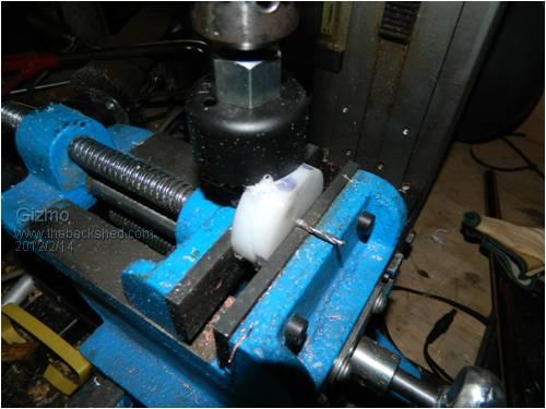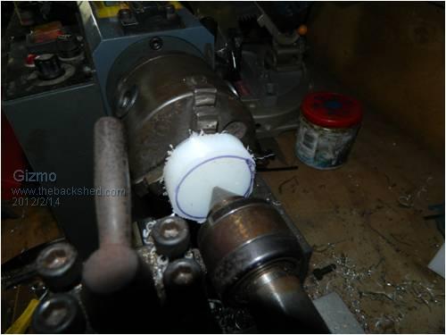 The problem is non-existent with 3 blade turbines, they have a natural balance. So I decided to make a new 3 blade turbine, just for fun. First I machined up a bit of HDPE.