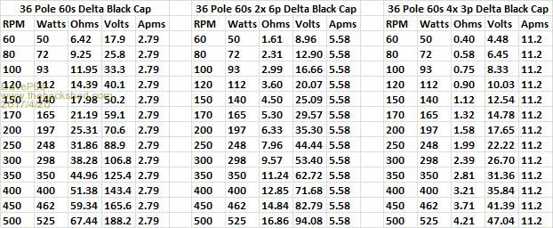 For those who are curious about getting the maximum output power from an F&P stator over a given RPM range, I've made up a few tables.