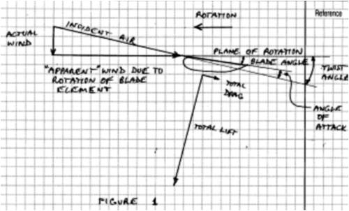 G'day John, I am having some difficulty understanding what you are referring to as the term 'plane of rotation' to me means the prop is rotating in the vertical plane, perpendicular to the actual wind, and in your question this does not make sense to me. Further, I cannot see what it is you may be referring to. Are you concerned that your blade angle of 8.5 is not the same as Glenn's 5? If as you say you research and the documents with their explanations have not clearly shown the relationships, it is difficult to know what to help with. It is more of an art or craft for the DIY windmill maker to select TSR, blade material, profiles, diameters and angles of attack, etc than it is a science with established formulae for every possible combination. There is therefor no fixed or correct procedure for verifying the specifications one builder uses compared to say another. Nor is there any set way for you to arrive at 'guaranteed' 100% max efficiency, perfect set of say PVC blades. The best you can hope for is to understand (as much as is possible) the relationships and effect different parameters will have and make an educated GUESS (as best as you are able) to arrive at a compromise for the conditions of intended use. So there's my ramblings on a question I did not understand. Do you have more specifics? was working fine... til the smoke got out. Cheers Gill _Cairns, FNQ |