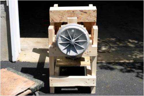 The bench is solid 2x4 and 2x8 construction. The motor is 1.5hp dc motor. The pulleys give a 2:1 gear reduction. There is a cage to trap the big flywheel in case it comes off. I used two 25A rectifiers to split the AC current so they don't overheat. They each see about 10A when I'm maxed out on my variac to the motor at 140v. Two capacitors filter the rectified voltage. I use a frequency counter on my multimeter connected to two of the phases. 28 hz equals on revolution/second. Two other multimeters measure current and voltage. Graph will follow shortly.