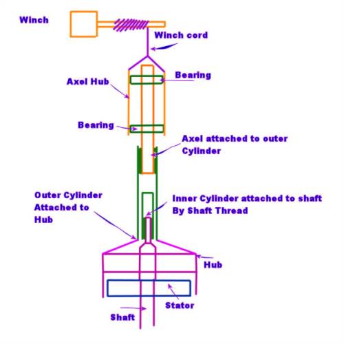 So, the initial idea was to have the hub raised off the stator until it starts turning and then lower it onto the stator.