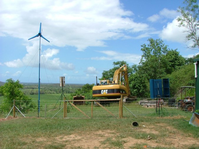 This should give better wind past the tower, and hopefully generate a few more watts. I also had the Excavator dig a dam at the bottom of my property. The soil is high in clay, so it should hold water. Time will tell, it might just be a big hole in the long run. Unfortunately the excavator may have damaged the buried water pipe that leads from my bore up to the house. The jet pump on the bore usually runs at 80 – 100 PSI to give normal pressure at the house. Now there is no pressure at the house and the jet pump can only reach 50 PSI. If I turn off the pump is leaks down to 25PSI, then remains stable. 25PSI works out to about 17meters of lift, or about half way up the hill. I turned the pump back on and went for a walk to find the leak, but no luck. The pipe is about 600mm deep, so chances are the water pissing out the pipe wont make it to the surface. Looks like I will have to run a new pipe, lucky the poly pipe is cheap at about $170 for 150 meters. This time I'll run the pipe over the ground, it is more vulnerable, but at least I could find any leaks. I have about a weeks worth of water left in the tanks, so I'm not too concerned. Glenn The best time to plant a tree was twenty years ago, the second best time is right now. JAQ |