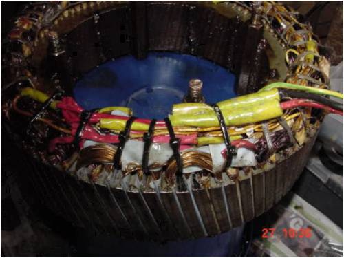 the stator has been drowned in mineral varnish (nothing else suitable I'm afraid) over the period of several days.