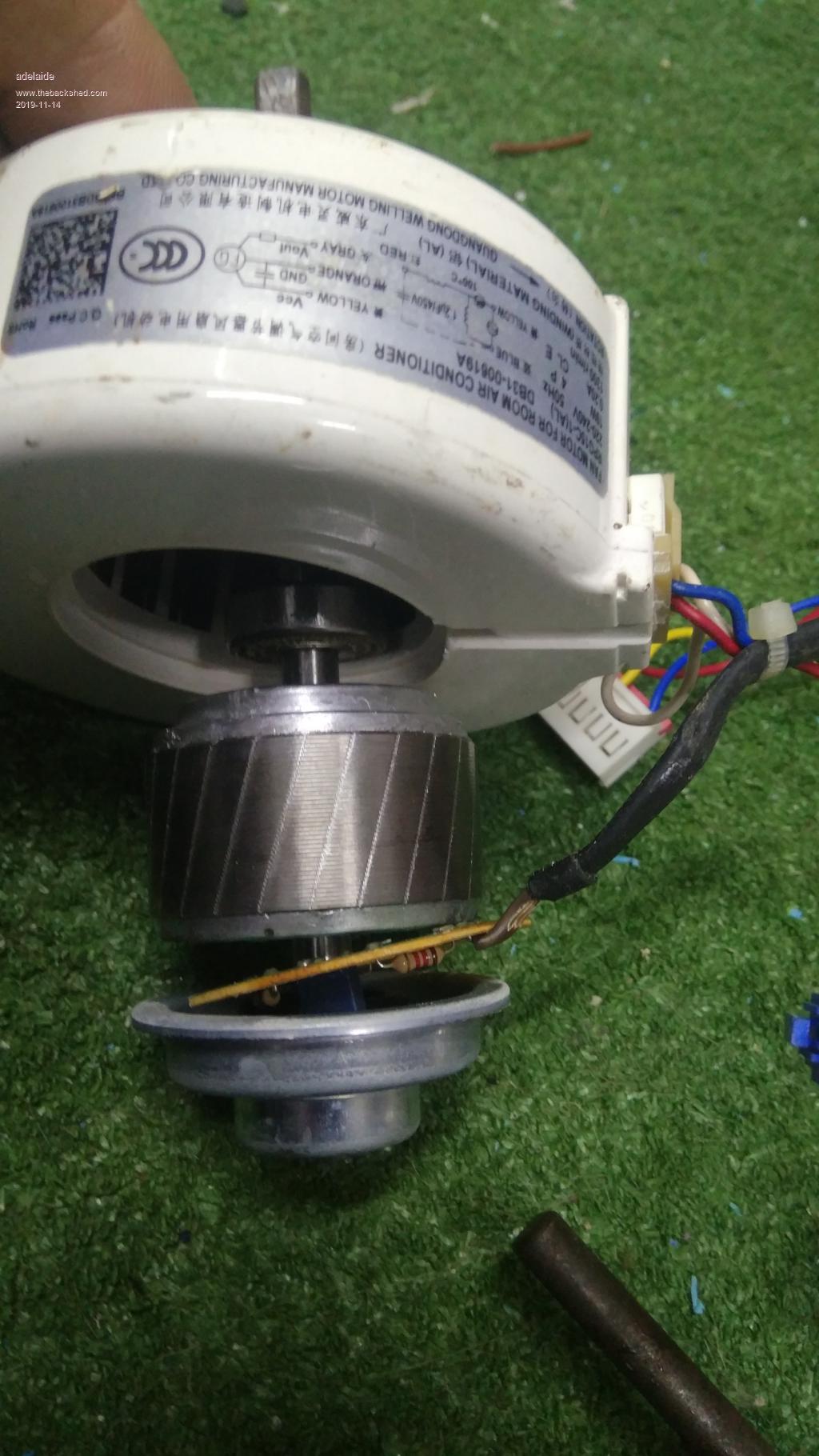 Hi got this motor out split system ac internal fan motor some have ac motor with cap some have better permanent mag 3 ph hi volt input with internal dc to 3 ph driver. seen occasional with problem and few variants, some you can get to the star points and centre.some only dc hi v out some 30 v 2 amps(if ever play with these some are dangerous voltages,if lo volt bat not connected easy can kill treat as hi volt)