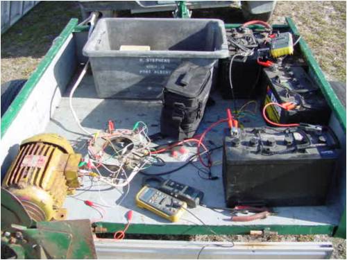I didn't have any batteries on hand, but I did bring a 415v 3kw induction motor .. just to put a load on the alternator .... on the off chance a gust came along and it became unruly.... and it did