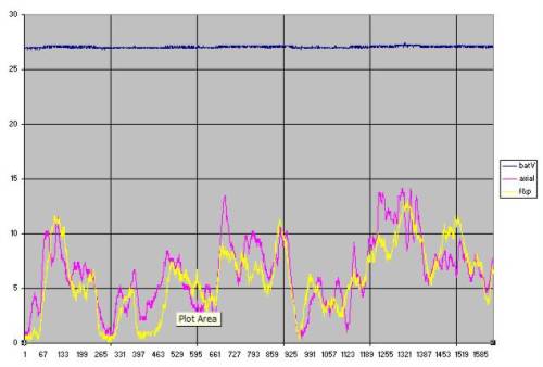 The first flying test is finished. I have logged the F&P with my mill as a comparison. The graph below has battery current for each mill and battery voltage. The current is multiplied by 10 for clarity to show on the one graph. The test was for 5 minutes. This is a 24V nom battery system. There are some interesting features. The F&P mill needed approx 15kph wind to start. The axial flux mill has a 3.14m^2 wind capture area and has a Maximiser between the mill and battery. The F&P mill has a 7.07m^2 wind capture area and is direct to the battery bank. I have to say that there is little difference in the currents between each mill. The iron cored mill was not overloaded at the power levels tested. It seems that the iron and winding resistance gives a degree of wind energy tracking. The larger rotor had more inertia and this smoothed the mill response. The most obvious point is that the F&P alternator required 7/3 larger rotor area to produce approx the same current. There is significant noise associated with the cogging. This does diminish at higher power levels. I have had to turn the F&P mill off until I either twist the pole fingers, or use some other technique to reduce this noise. It certainly will draw unnessary atttention to the windmill with the current noise levels if left this way. No doubt more enexpected results will come with further testing. Gordon. become more energy aware |