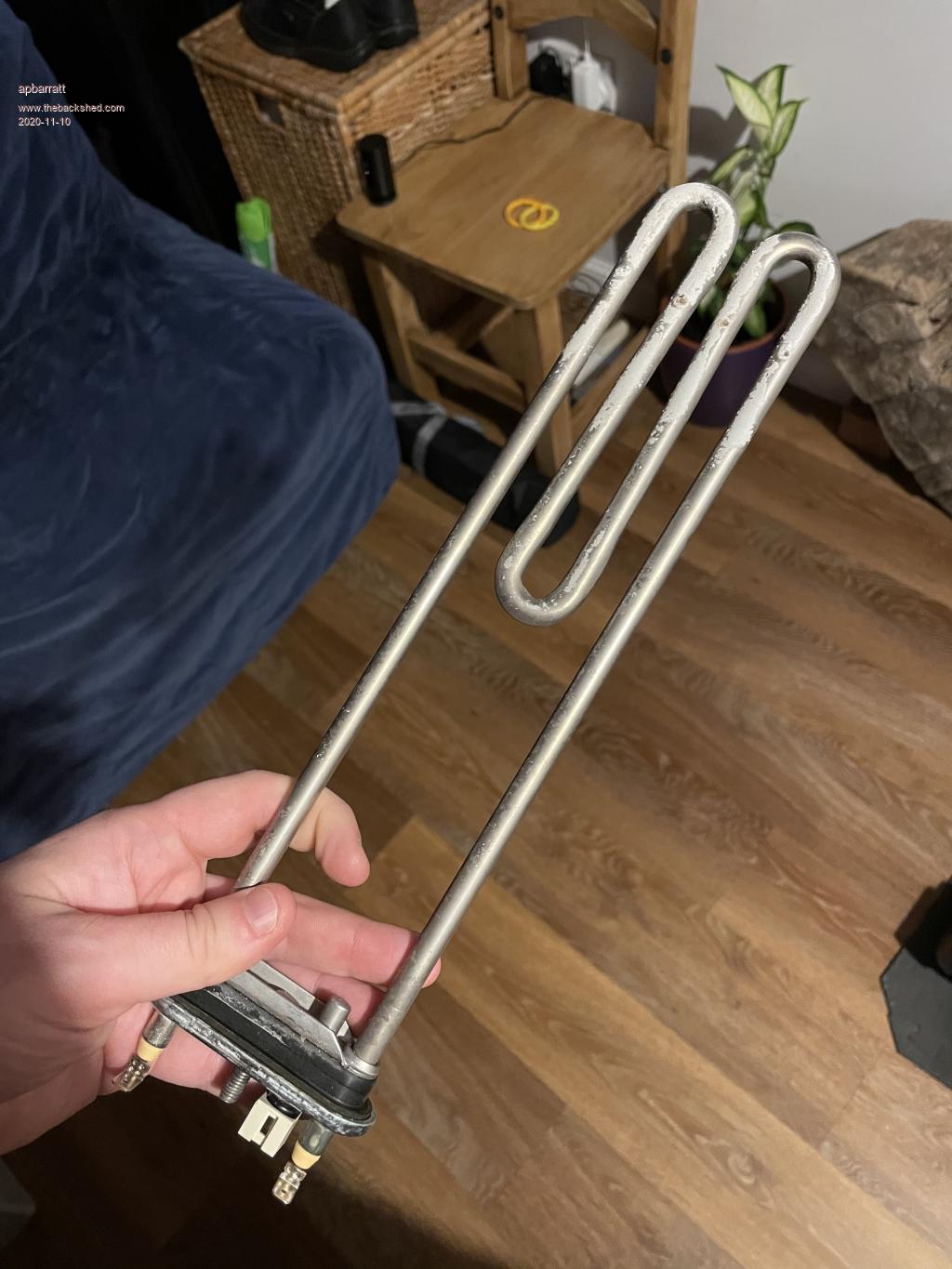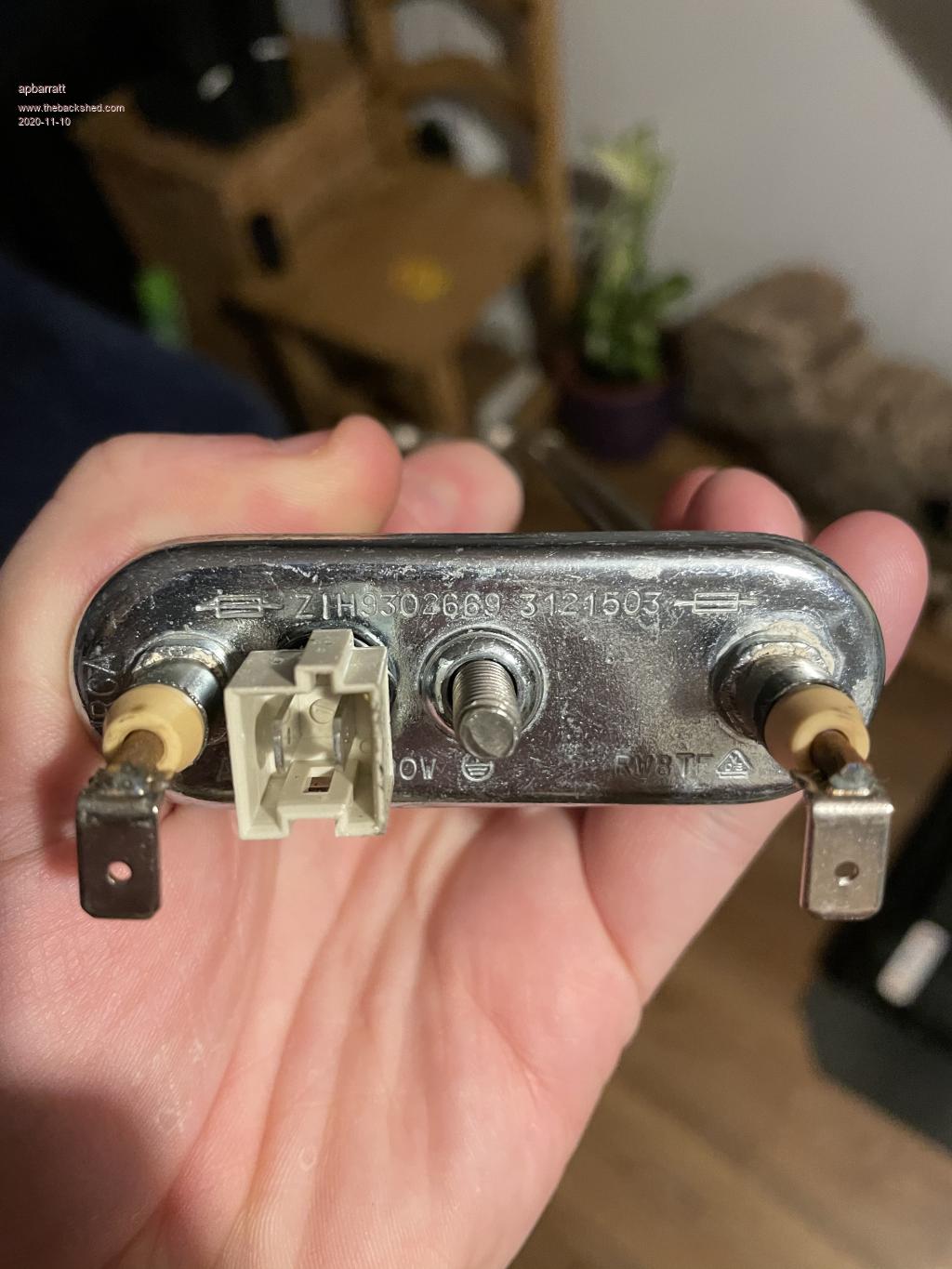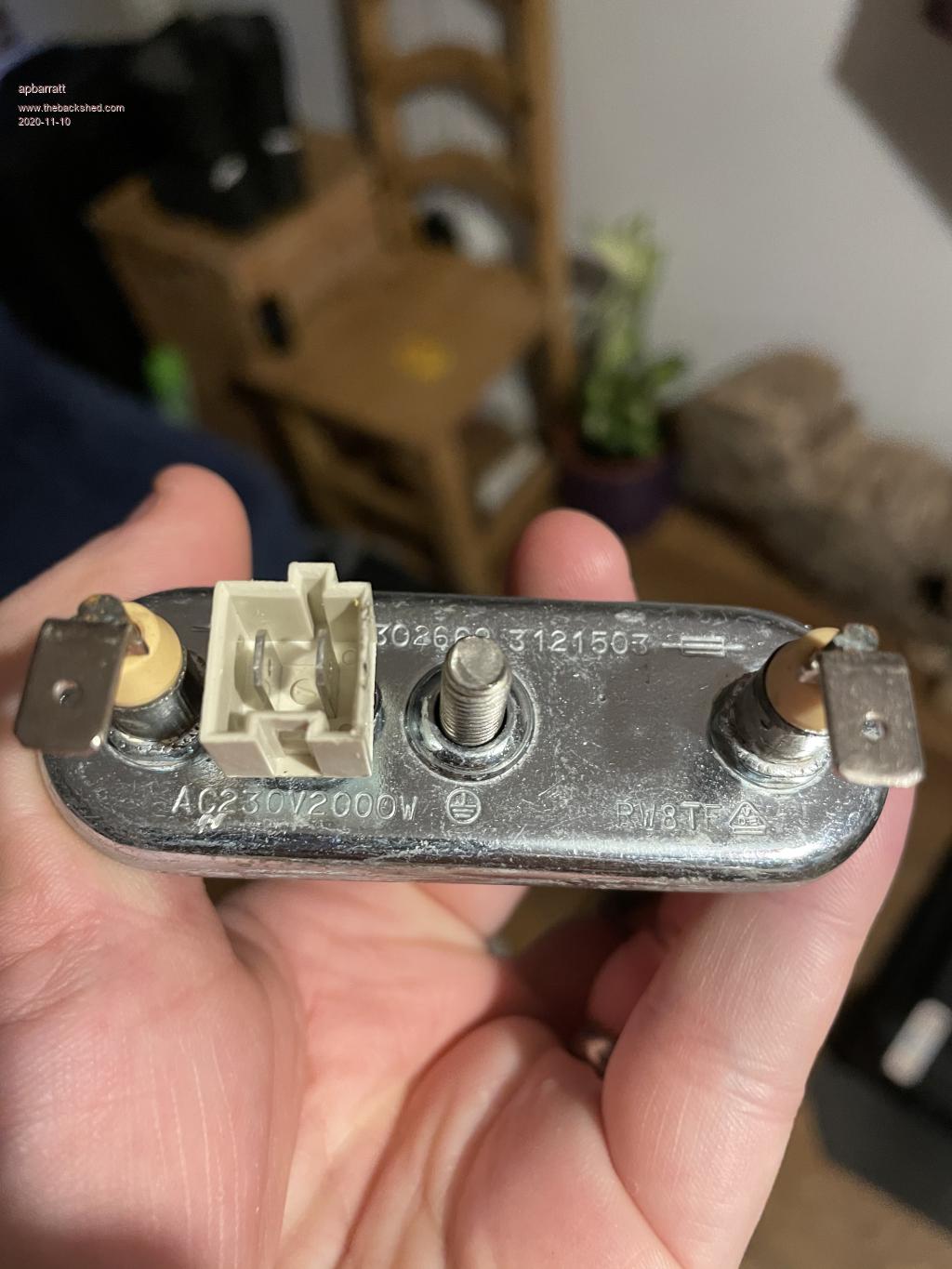 Whilst tidying up the remains of the LG washing machine I took the direct drive from, it occurred to me that I also removed this immersion heater from it.  I was wondering, if I'd be able to recycle this to use as my dump load?