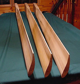 Hello Wes Glenn Trevor and others, Another type of forming process which I used to be involved with is vacume forming.If the plugs for forming were made with the process Glenn and Trevor employed to produce the fiber glass blades described at the earlier links.But instead of laying up fiber glass to make the two halves and then joining them.The same plugs could be used with some modification in a vacume forming machine.In this process the PVC material could be used in sheet form or strip form.It is held in position over the mould while a heat source is used to evenly warm the PVC.Once attaining the desired amount of heat in the PVC it is then clamped down over the mould and a vacum is applied to the cavity of the mould drawing the heated PVC into the shape of the plug.The process is sometimes improved by applying posotive air pressure to the top side of the sheet being formed.This process would be done to form both the front and rear of the blades.Then another step is required to fuse the two halves together either using an ultrasonic welder or a hot metal element in a plug of similar shape to the forming plug.Once set up a rapid production of different sized blades in the same machine can be achieved.Only the plugs for different blade sizes need to be fitted for a given production run.A simple example of this process is the forming of Blister packaging to display goods in local hardware store.Another associate would use it to reform Vinyl for replacement dashboards in cars.This will give a hollow light weight and very stiff blade with excellent repeatability.The set up cost will initially be higher but the end result far quicker than machining blades with a CNC router.With far less mess.