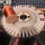 500rpm of the rotor would = 500/11.36 = 44rpm of the large pully. This does seem to jive.