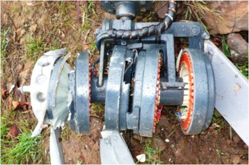 Hi kiwijohn, I think phill was quite clear with his explanation. The mill came down with all 6 blades still intact. When the mill hit the ground, this is when the blades broke off. Gordon. become more energy aware |