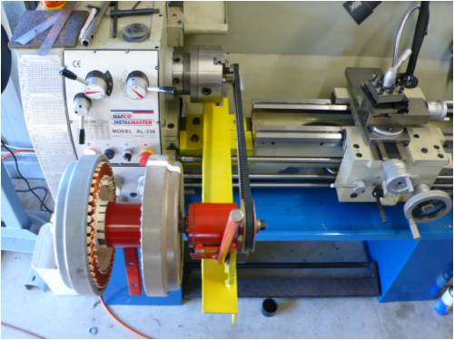 Thanks for the feed back , I know its early in the stages of setting this test up but welcome all input , the O/S belt is a great idea but my concern is being able to gather as much info at the lower speeds of up to 300rpm as different cut in speeds with different cap sizes might mean something . Of course seeing what the max output is also of interest , building the support to mount my dual of the gap bed mounts isn't that hard and enables quick ratio change by swaping a pulley mounted in the chuck . The lathe drive motor is 2Hp so a varible speed drive may be a bit expensive ?