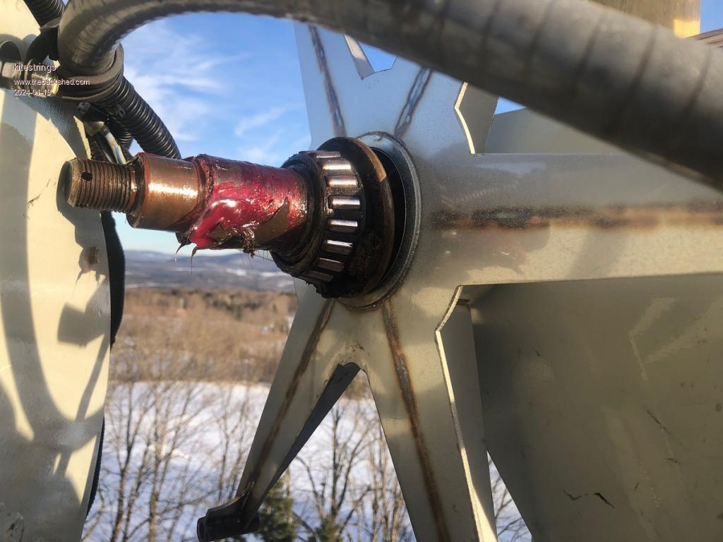 We had a fair number of challenges this past year. Lightning damaged one of the controllers in September. We had some water migrate into one of the blades over and started some rot in the root-end. We'd just repaired that and found we had a bearing failure; yep, the downwind, harder to get to one. The bearing was a bit of a challenge on the tower, but the things is quiet and smooth now and cranking out good power. Yesterday we did about 5.3 kWh just during the day time hours. I shut it down at about 11 PM. The peak was 1976w on the one controller and 1565 on the second, so about 3.5 kW at 82VDC in to the controllers. Those are good numbers for us. ![]() ![]() ![]() Here's the start up using our furling actuator: https://protect2.fireeye.com/v1/url?k=e87705e7-b7ec3d33-e8701597-860a66ff9d26-fd7af06c2c6693d7&q=1&e=39ae0485-480f-4e19-9d06-48fd86061f12&u=https%3A%2F%2Fyoutu.be%2FtecGNiydJd8 |
