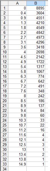 I have then manually extracted all occurrences of each logged windspeed and recorded the occurrrence for each.