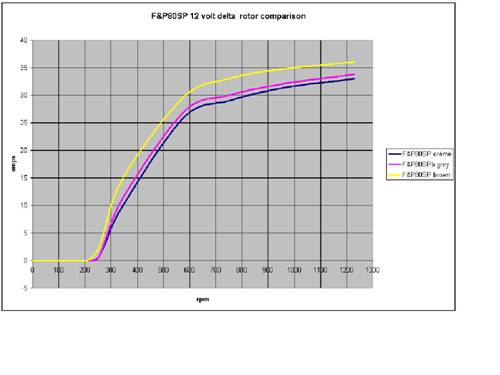 Different rotors on a F&P80SP 12V delta, twisted poles: