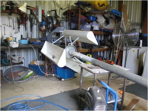 Howdy fellas I have finally got my lenz2 up It's a 80 series(stator pole twist) original wiring in star with the 3 phase run down the pole Only light winds here to day The lenz got up to about 60 or so rpm going by the 'one one thousand, two one thousand, three one.....method The 3 phase is going into a bridge in the normal manner then the dc rail is sitting on a 6800uf 250v electro with a dvm and a couple of lamps(12v+250v)close by but not connected I did notice that whenever it spun it would ,of course, show volts at the cap that climbed with the rpm The max volts I saw was about 60 (cap only)at the max rpm I have seen to date At about 50v I can apply the 12v 50w lamp to the cap and crackle crackle, bright light then dvm shows 0v I can apply 240v 60w lamp and the elements burn orange and the volt drop is much slower the with the 12v one My first little bit of wind power, hip hip I know there is a miss match of volts and this is proof of some power The mill went start/stop all day and was a little noisy at certain rpms Appyling a lamp load reduced rpm to near a stall but not having a steady breeze and not much of that it wasn't a surprise I would expect that some sort of charge could be gathered on such days by having only the cap as a load and pulsing the load on and off it according to it's charge state and/or rpm This would allow the rpm to be at it's max more on soft days I know I am talking about low power but every little bit helps I understand cutin now, thanks If I was to apply a battery load today, with the setup so undeveloped and all, the mill would have remained still, staggered a little once in a while perhaps, but still Heres a pix of it
