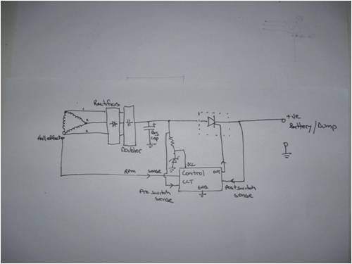 I have been thinking about current control for a small lenz2/fp mill What I would like to do is control the current available to the battery according to rpm of the mill I was thinking of using a scr based circuit with a hall effect for rpm info The reason for my interest is that I would sooner charge at 24v/ .5 amp (for an example) in low wind than to have the back emf of the fp stall the mill Once the rpm is up then lift the current Can someone point out any major flaws on the thought or any comment, suggestions?