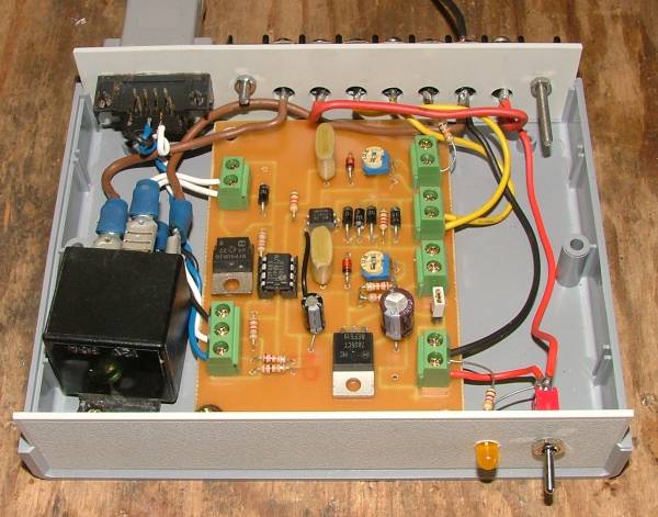 As you can see there isn't much to it, most of the work is done by the software in the PicAxe chip and the attached computer. A computer is only needed for logging, the controller will work fine without it, though you will need a PC for the initial setup. I use a relay to switch the load across the battery. I did consider MOSFETs, but relays are cheap and easy to use.